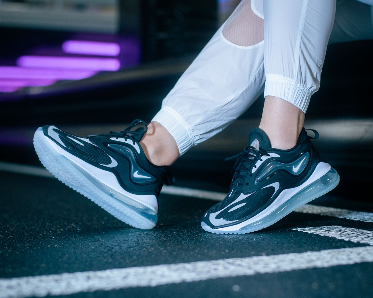 Такви се и патиките што ги носев на фотографирањето со BUZZ. Иако изгледот е типичен, дизајнот на патиките Air Max со меурлив ѓон некако нѐ потсетуваат на моделот Air Max 720-818. Со оваа силуета Nike направи чекор напред. Ѓонот е уште подефиниран, а со својата технологија нуди поддршка и удобност на секој чекор. Удобноста е типична за сите модели на Air Max, нели? Сепак, она што ги прави Air Max Zephyr нетипични е дефинитивно изгледот на иднината. Воздушните меури на страните и интересните дезени на ткаенината даваат разигран и свеж изглед кој се истакнува со секој outfit. Јас ги комбинирав со футуристички Nike outfit во бела боја.