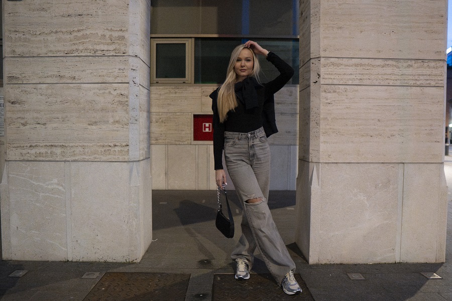 Ги искомбинирав со сиви фармерки и црн дуксер, создавајќи едноставен аутфит за секој ден, прошетки низ град или кафе со пријателите или состаноци.